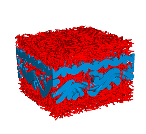 FiberGeo模塊可以通過纖維的隨機分布模式,創(chuàng)建虛擬的無紡布和纖維增強復(fù)合材料。纖維可以是直的或彎曲的,輪廓可以設(shè)定為不同的形狀(圓形、橢圓形、矩形、纖維素等),也可以設(shè)定纖維的朝向和纖維參數(shù)的分布等等。